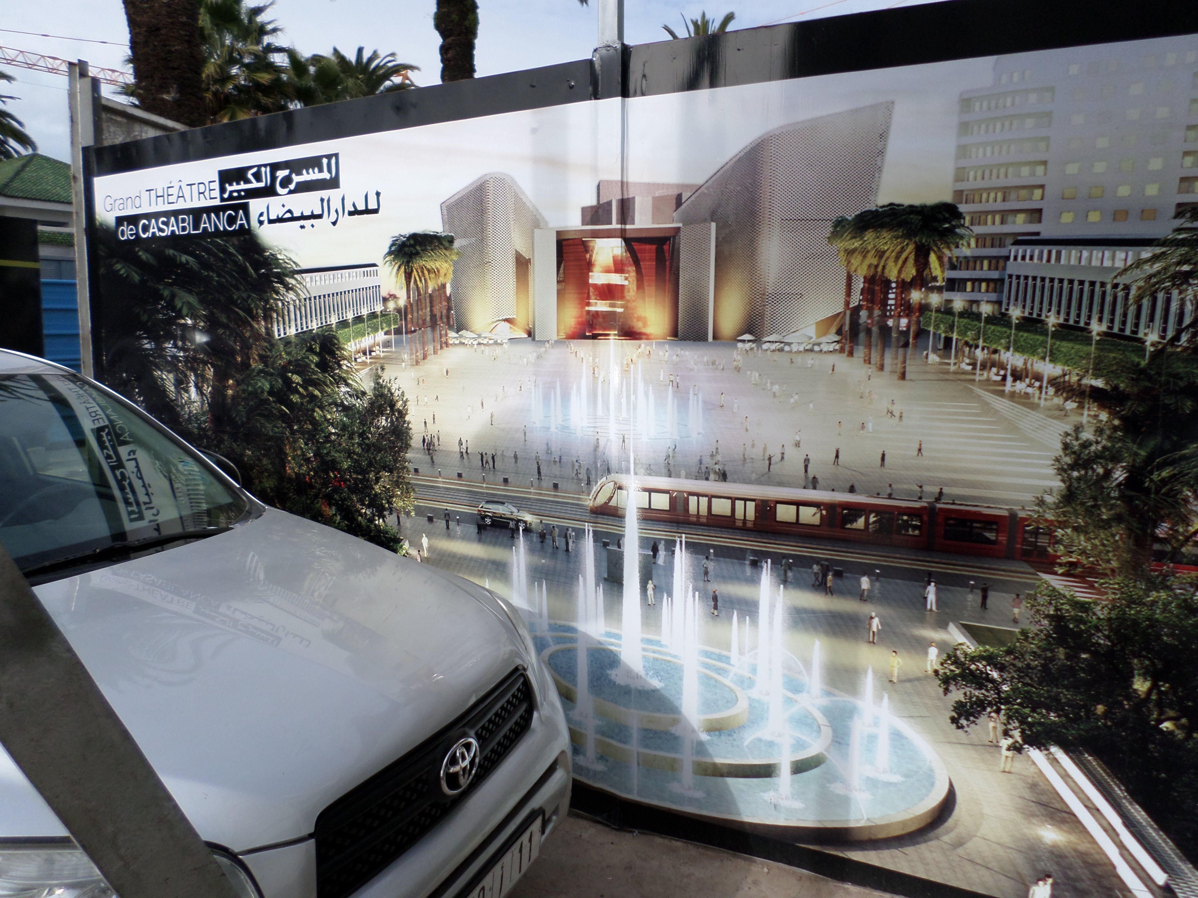 Billboard of the construction of the Grand Theatre in Casablanca, Morocco